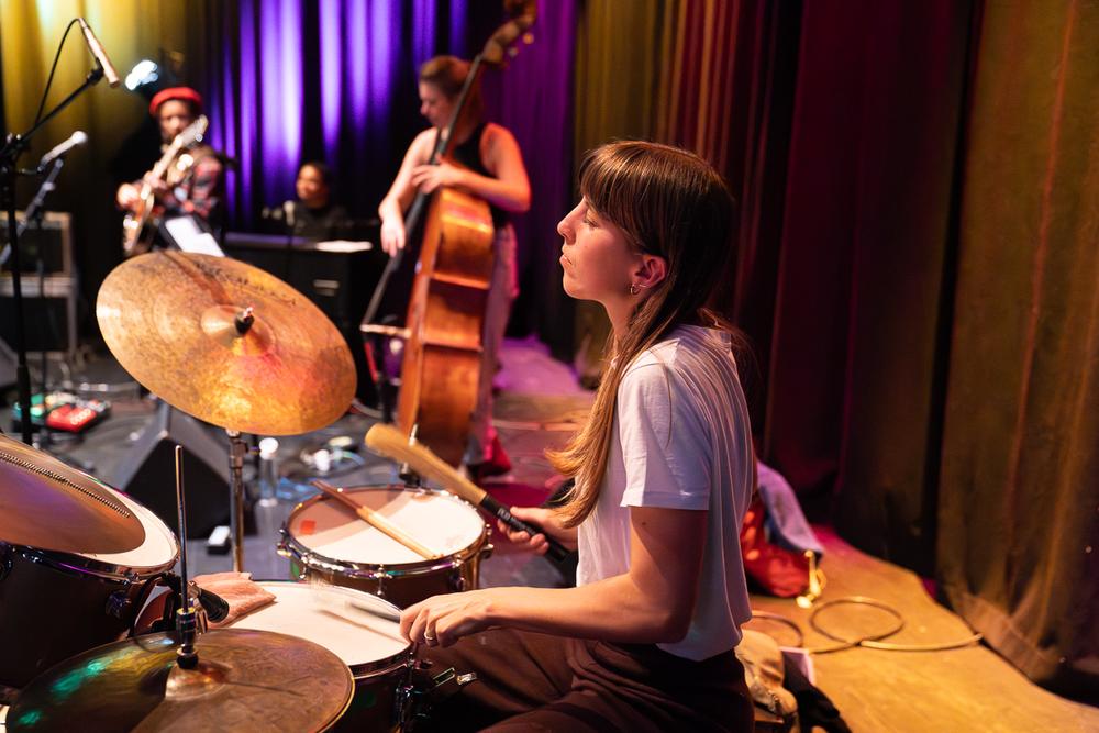 *FLINTA staat voor: Female, Lesbian, Intersex, Non-binary, Trans en Agender. Deze sessie bood een veilige en ondersteunende ruimte voor FLINTA-artiesten om te improviseren, connecties te leggen en te schitteren – en brak met de traditie van vaak door mannen gedomineerde jams. Daarna ging het podium open voor het publiek, en werden alle muzikanten uitgenodigd om mee te jammen en de geest van de dag verder te dragen.